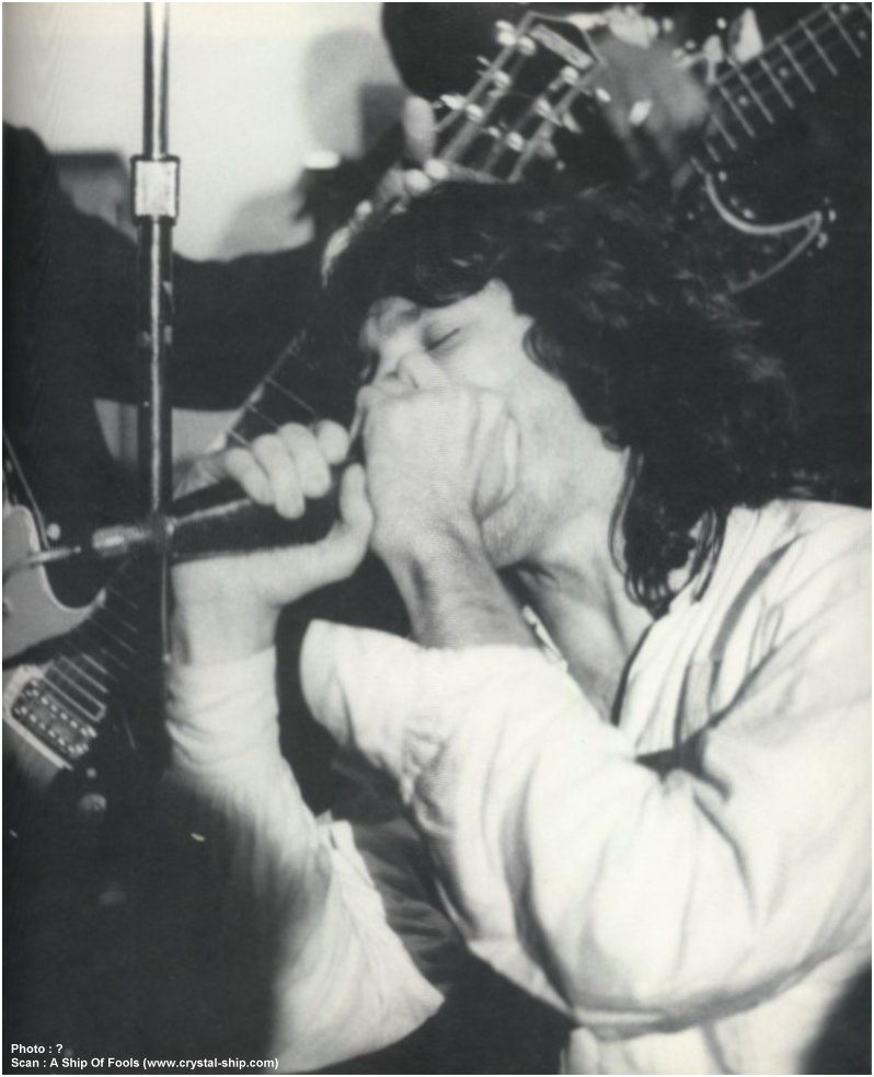![]() Cette photo a été prise probablement en 1968 lors d’un concert de Bo Diddley et son groupe. Ce n’est pas évident sur cette photo, mais j’ai une autre photo montrant clairement Bo Diddley, son bassiste et le batteur avec Jim s’époumonant sur scène. Jim, qui l’aimait bien, s’est vraisemblablement rendu à un de ses concerts et s’est finalement joint au groupe pour quelques chansons. Par chance, un photographe, que je n’ai malheureusement pas retracé, était présent au concert et a pris ces clichés.